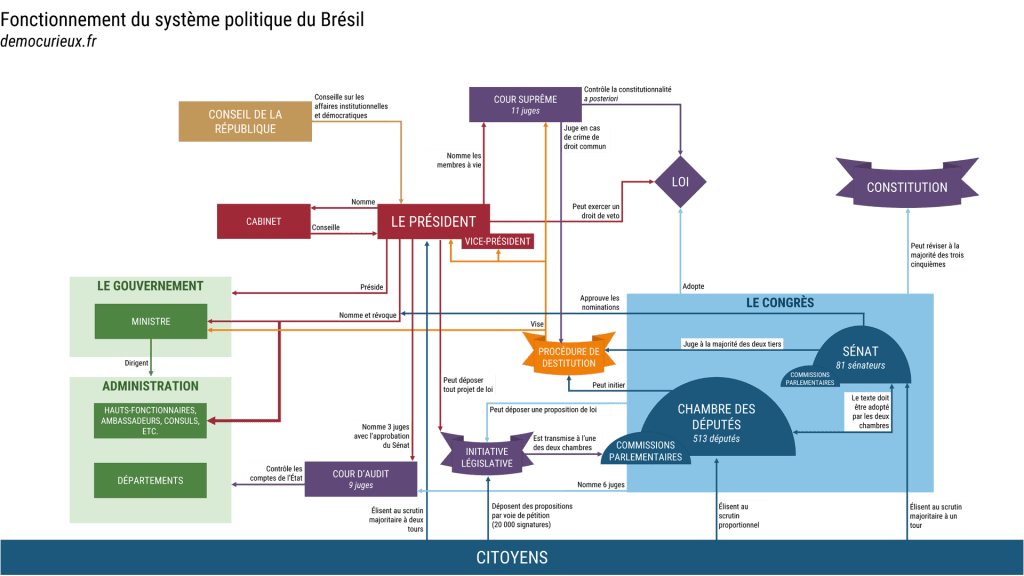 Le Brésil est une République fédérale organisée sous la forme d’un régime présidentiel, comme la très grande majorité des pays du continent américain (notamment les États-Unis).