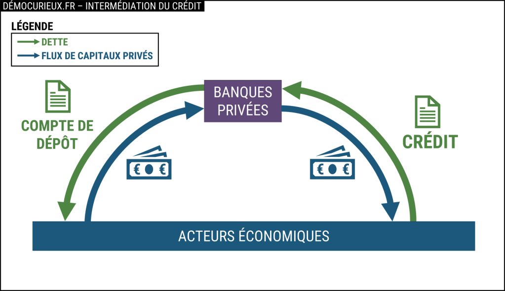 Naturellement, quand les crédits sont remboursés et que l’épargne est retirée du compte de dépôt, les flèches vont dans le sens inverse.